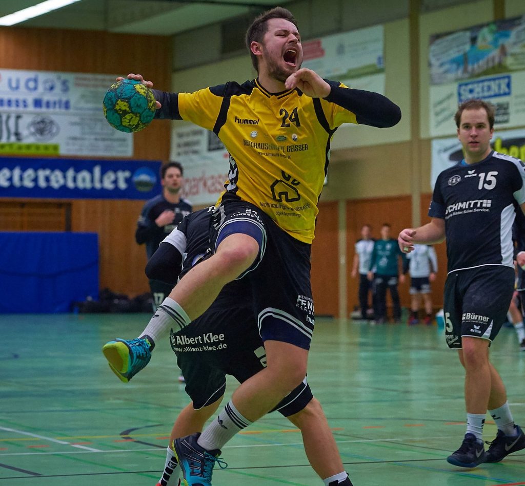 Die Knielinger wollten gegen die Rennstädter einen bedeutenden Schritt in Richtung Klassenerhalt machen und im fünften Spiel in Serie ungeschlagen bleiben. Entsprechend engagiert gingen die Männer von Trainer Erkan Öz zu Werke. Aus einer kompakten Defensive heraus wollte man erneut zum Erfolg kommen. Von Beginn an führten die „Gelbhemden“ dann auch und schafften es erstmals in der 21. Spielminute einen Dreitorvorsprung herauszuarbeiten (8:5). Wieder waren die Knielinger von allen Positionen torgefährlich. Mit zunehmender Spielzeit klappte auch das Zusammenspiel Torhüter –Abwehr immer besser. Torwarttrainer Florin Panazan, der den erkrankten Pascal Fuchs im TVK-Tor vertrat, zeigte einmal mehr, dass er auch nach dem eigentlichen Ende seiner aktiven Laufbahn sportlich noch einiges zu bieten hat.