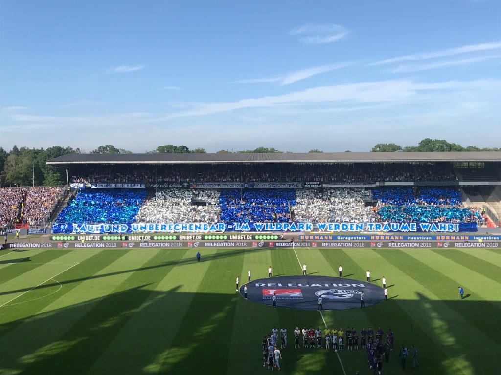 Karlsruhe (mia). „Laut und unberechenbar, im Wildpark werden Träume wahr“ hofften die KSC-Fans mit ihrer Choreografie. Für den Karlsruher SC hieß es am Freitagabend nach rund 90 Minuten, Relegationsaufgabe Nummer eins mit einem torlosen Unentschieden  beendet. Der KSC hatte gegen den FC Erzgebirge Aue im Heimspiel im Wildpark mit 0:0 nicht allzuschlecht für sich beendet.