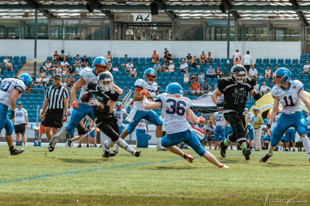 Auch die Defensive konnte die Heilbronner Angriffsbemühungen in der ersten Halbzeit gut in Schach halten. Ein 10-Yard Sack von Defensive End Raphael Zistler zwang die Miners bei ihrer ersten Angriffsserie dazu, den Ball per Punt wieder abzugeben.