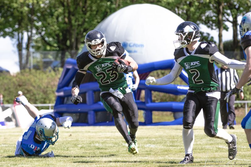 Im Anschluss daran tröpfelte das Spiel etwas vor sich hin und war eher von den starken Verteidigungsreihen beider Mannschaften geprägt. Erst zu Beginn des zweiten Quarters gab es die nächsten Punkte auf dem Scoreboard: Am Ende eines langen Drives der Albershausener fing Wide Receiver Rene Reinert einen Screenpass über die rechte Seite und trug ihn anschließend aus kurzer Distanz zum 10:0 in die Endzone.