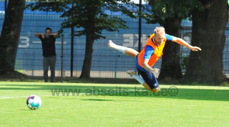 Karlsruhe (mia). Auch am Dienstag ging das Training von Fußball-Zweitligist Karlsruher SC fleißig weiter. Eindrücke vom KSC-Training mit Ball gibt