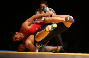 William Harth (rot, SV Germania Weingarten) gegen Gennadij Cudinovic (blau, KSV Köllerbach) SVG Medienpool